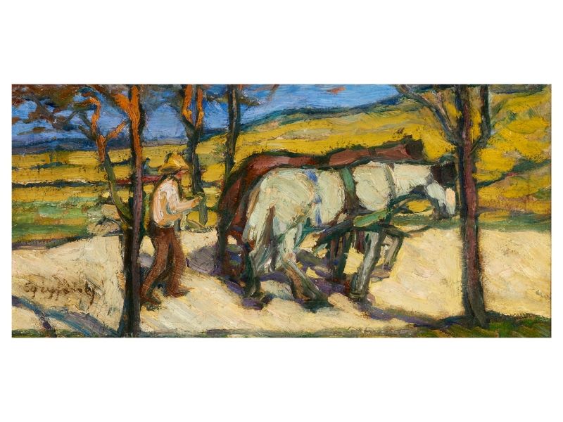 309. tétel, Egry József Újlak, 1883 – Badacsonytomaj, 1951 Hazafelé (1911) Olaj, papír 26 × 52,5 cm Jelezve balra lent: Egry József