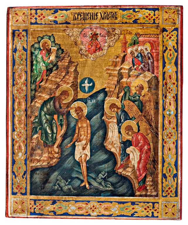 32. tétel, Orosz ikonfestő, 19. sz. vége: Krisztus megkeresztelése