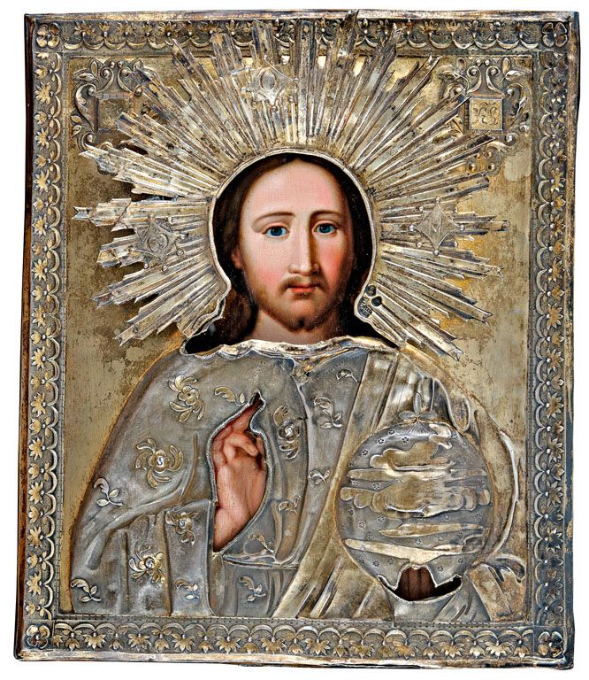 34. tétel, Orosz ikonfestő, 19. sz. első fele: Pantokrátor- Mindenek ura