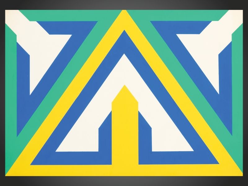 383. tétel, Bak Imre Budapest, 1939 – Sárga-kék kompozíció (1970) Gouache, karton 51 × 73 cm Jelezve hátoldalon: Bak 70