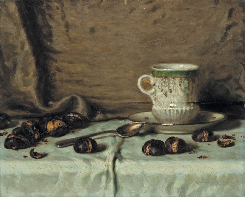 484. tétel, Rubovics Márk (1867-1947): Asztali csendélet gesztenyékkel, 1915