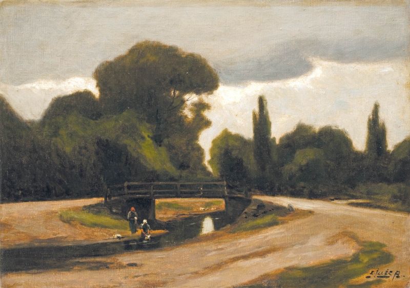 568. tétel, Edvi-Illés Aladár (1870-1958): Patakpart híddal