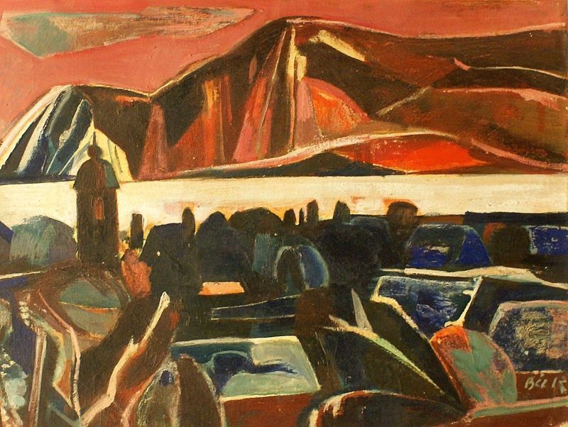 Műtárgy leírás – Bér Rudolf Budapest, 1924 – Budapest, 2004 ALKONY Olaj ,farost 60 × 80 cm Jelezve jobbra lent: Bér R