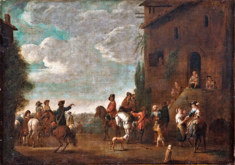 82. tétel, Wouwerman, Philip (1619-1668) követője, 18. sz. eleje: Elegáns társaság pihenője