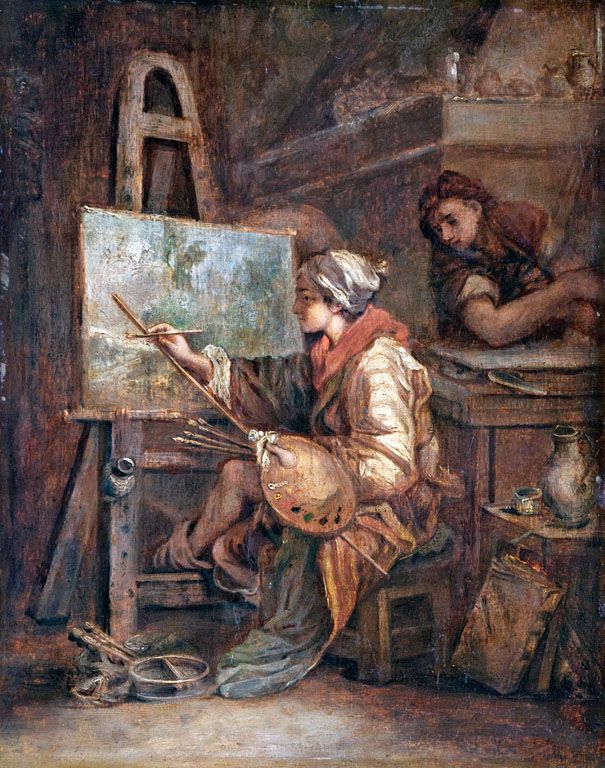 88. tétel, Német festő, 18. sz. második fele: Festő műtermében