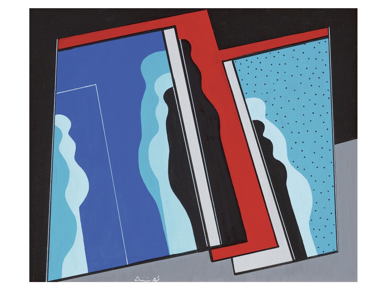 Kikiáltási ár: 220 000 FtBak Imre (Budapest, 1939) Hommage á Ady , 1977 Szeringráfia, papír 60 × 45 cm Jelezve jobbra lent: Bak/77