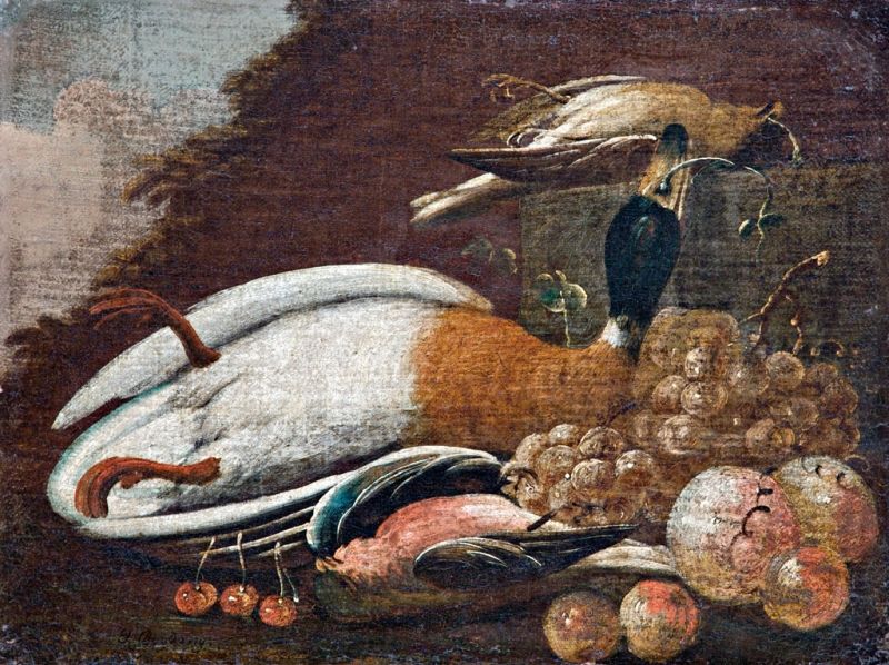 94. tétel, Holland festő, 18. sz.: Csendélet leölt madarakkal