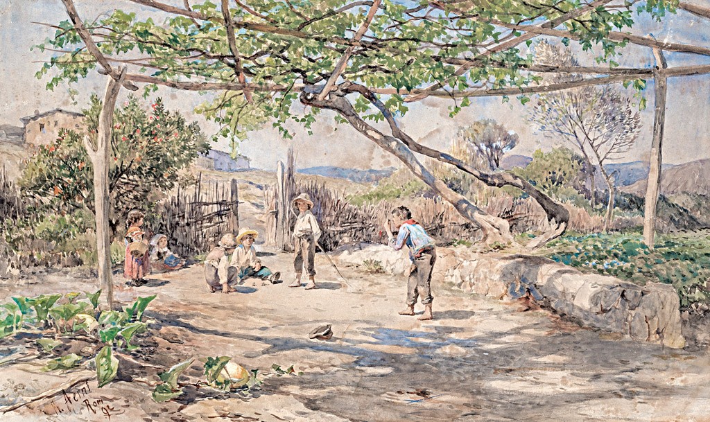 Aerni, Franz Theodor (1853-1918): Golyózó gyerekek, 1892