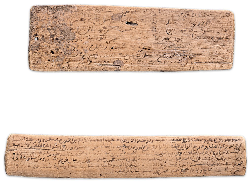 perzsa, 19. sz., fa lapon tussal festett versszakok, kis sérüléssel, h: 23,5 – 27,5 cm