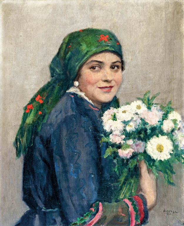 Áldor János László (1895 – 1944): Leány virágcsokorral, 1928