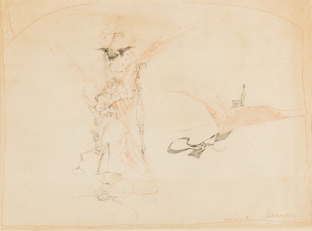 Almásy AladárJustitiakréta, ceruza, papírJelezve jobbra lent:Almásy Aladár 1986