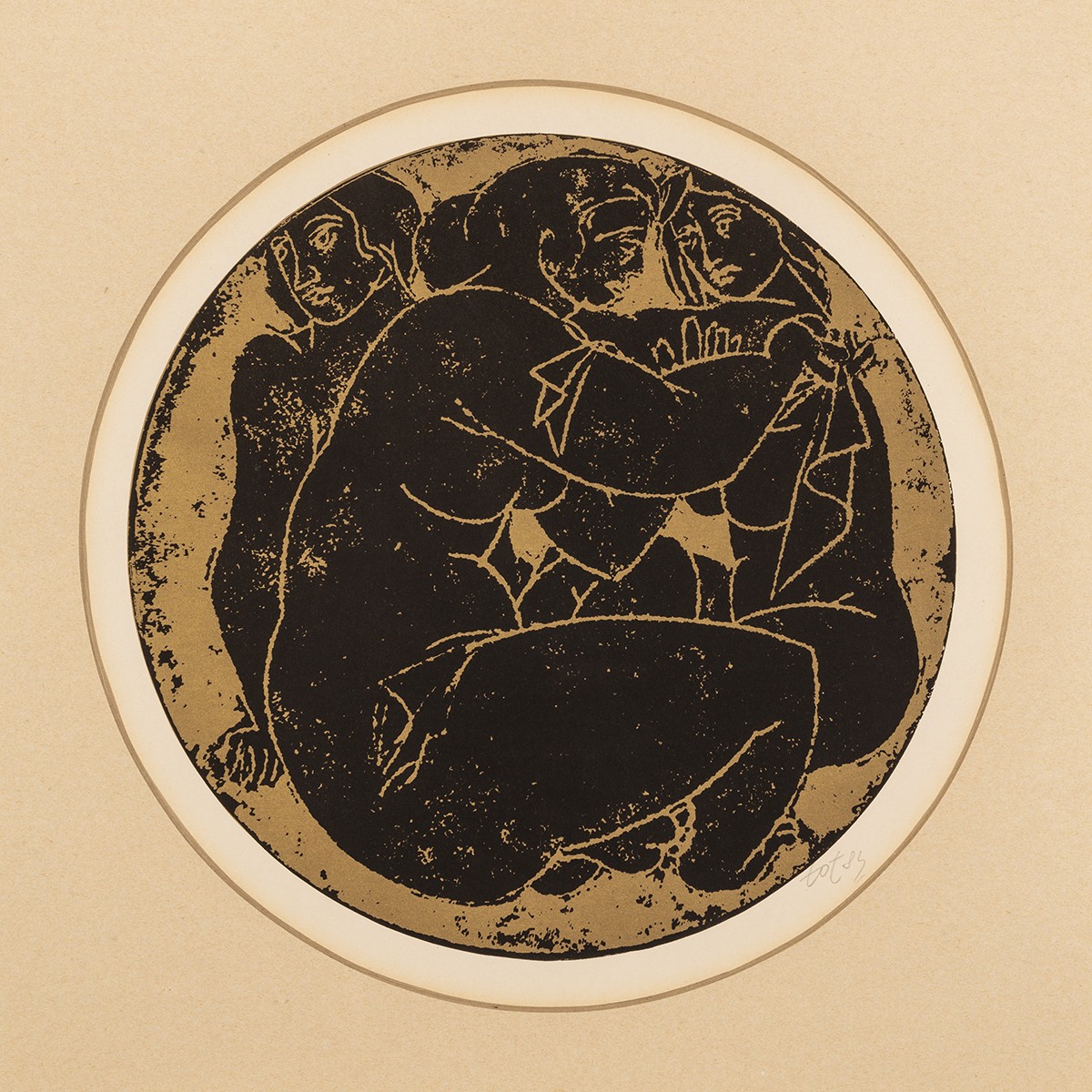 Amerigo Tot (Fehérvárcsurgó, 1909 – Róma, 1984) Három grácia, 1984 Szitanyomat, papír Átmérő: 300 mm Jelezve jobbra lent: Tot 84