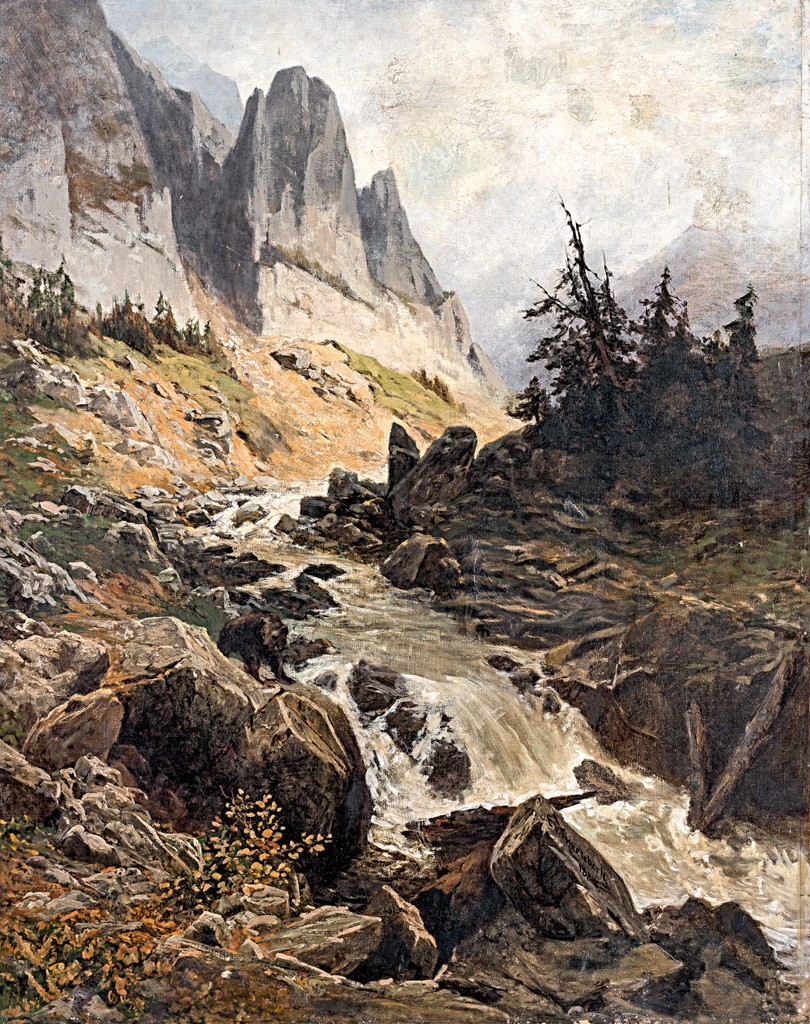 Ameseder, Eduard (1856-1938): Medve a hegyi patak partján, 1884