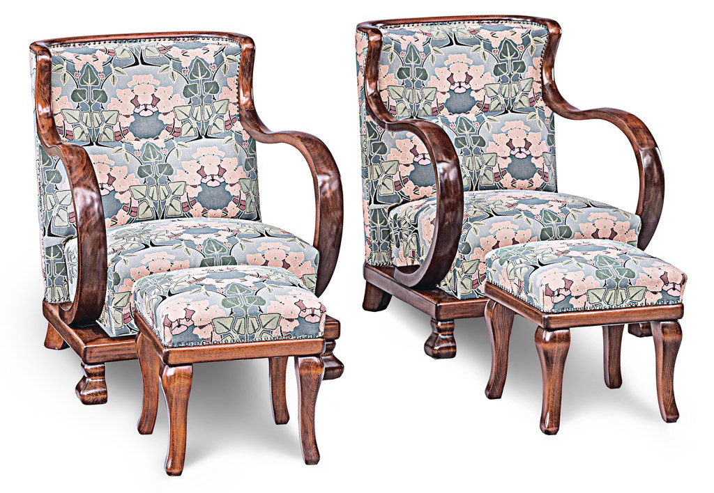 osztrák, 1920 körül, mahagóni színűre pácolt, hajlított bükkfa, felújított, fotel: 92*79*86 cm; lábtartó: 45*43*43 cm