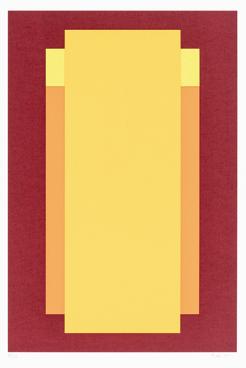 Bak Imre (Budapest, 1939) Variációk a végtelenre III., 2005 595 × 400 mm Szitanyomat, papír Jelezve balra lent: VII/16 Jelezve jobbra lent: Bak 2005 Lap a Variációk a végtelenre című, Bak Imre, Fajó János és Konok Tamás szerigráfiáit tartalmazó mappából