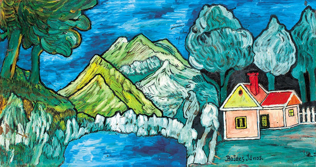 Olaj, üveg, 30,5×59 cm, Jelezve jobbra lent: Balázs János.