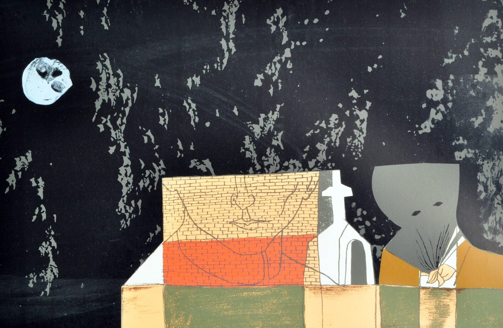 Szitanyomat, papír, 46,5 x 70 cm, Jelezve: 1956/ 1982, Jelezve jobbra lent: Bálint 82