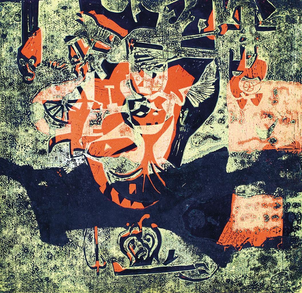 Monotípia, karton, 51×49,5 cm, Jelezve jobbra lent: Bálint Emőkének szeretettel Bálint Endre 1978