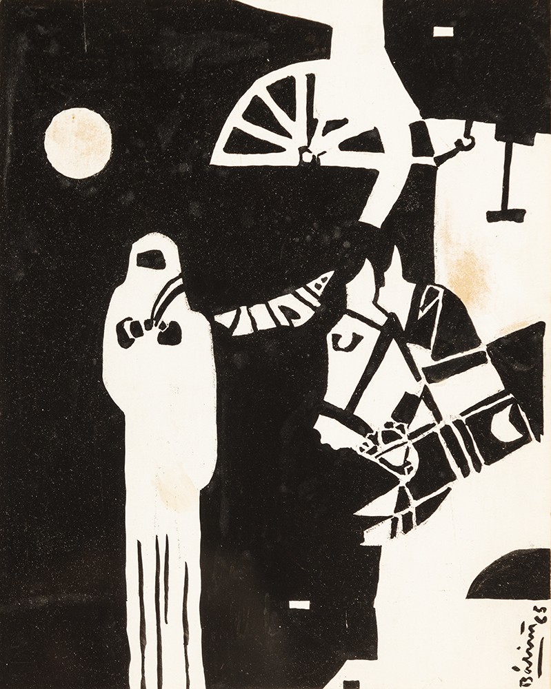 Bálint Endre (Budapest, 1914 – Budapest, 1986) Kompozíció lóval Monotípia, papír 260 X 210 mm Jelezve jobbra lent: Bálint 65