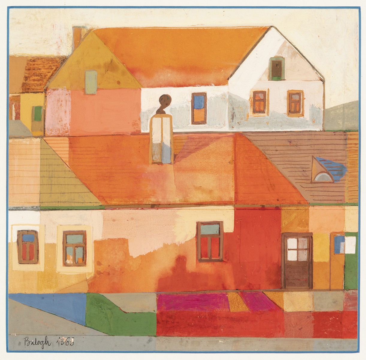 Balogh László (Eger, 1930 – Eger, 2002) Színes házak, 1965 Gouache, papír 220 × 225 mm Jelezve balra lent: Balogh 1965