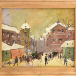 Bánfi jelzéssel: Téli forgatag. Olaj, karton, fakeretben. 27×33 cm<a href="https://www.darabanth.com/hu/gyorsarveres/437/kategoriak~Festmenyek-es-grafikak/Festmenyek-es-grafikak-jelzessel-jelzes-nelkul~500002/Banfi-jelzessel-Teli-forgatag-Olaj-karto