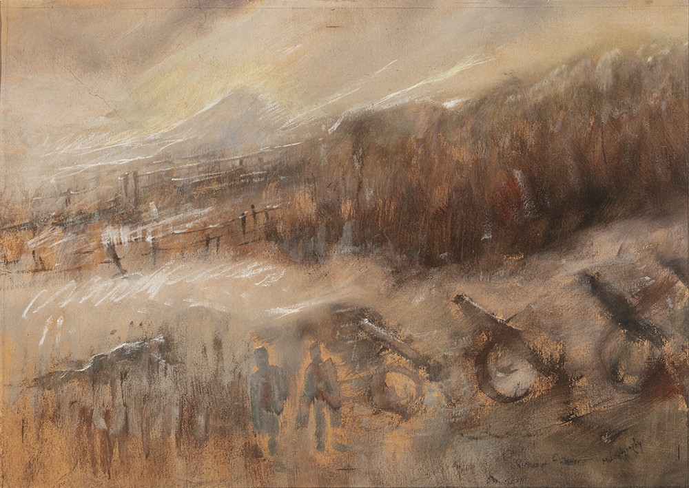 Báró Mednyánszky László (Beckó, 1852 – Bécs, 1919) Katonák Olaj, papír 34 X 48 cm Jelezve jobbra lent: Mednyánszky