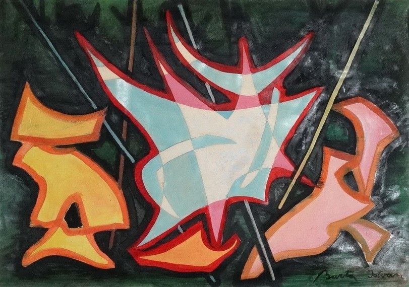 papír, olaj, tempera, jjl., 61 x 86,5 cm
