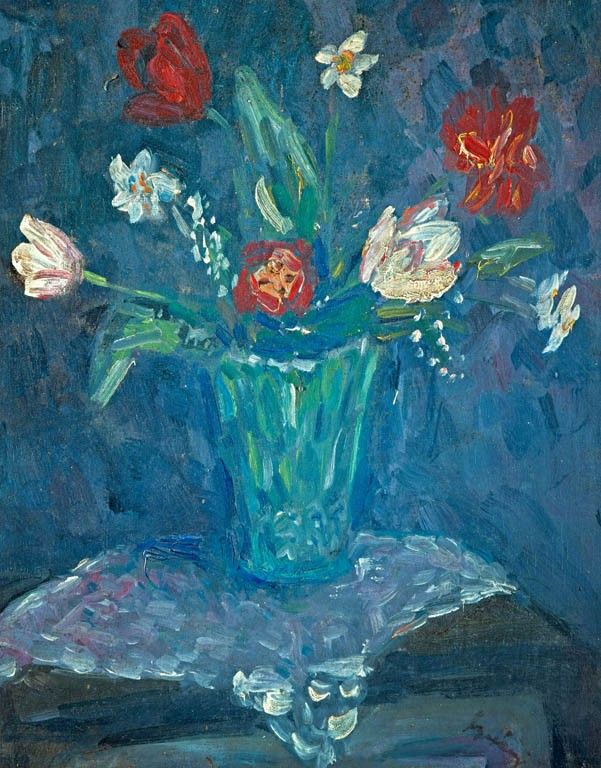 Belányi Viktor (1877-1955): Virágok zöld vázában