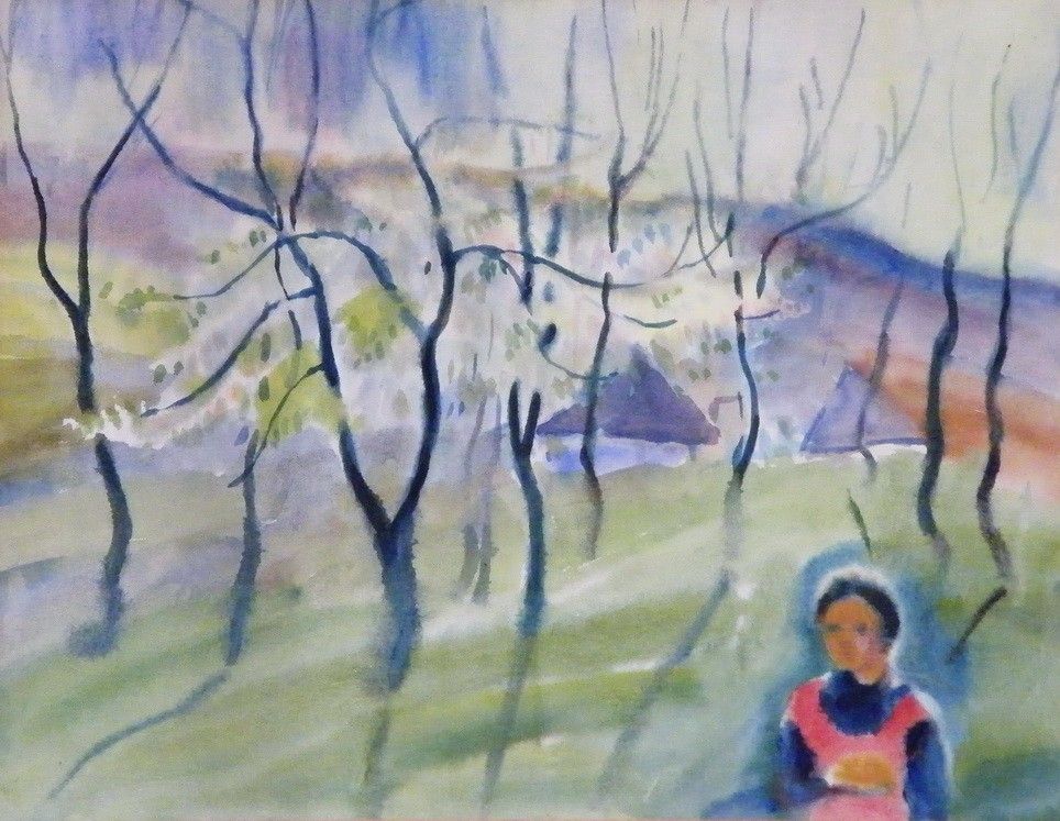 Bene József (1903-1986) ?: Tavaszi táj leánnyal