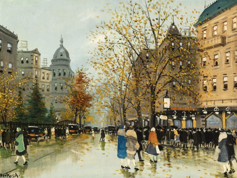 Berkes Antal (Budapest, 1874 – Budapest, 1937) Utcarészlet Olaj, vászon 60 × 80 cm Jelezve balra lent: Berkes A.