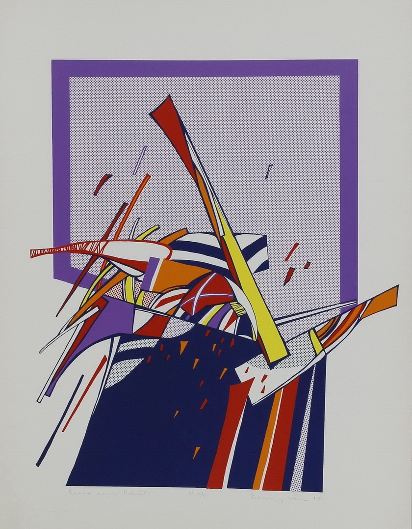 papír, litográfia, szita, jjl, keretben, 100 x 70