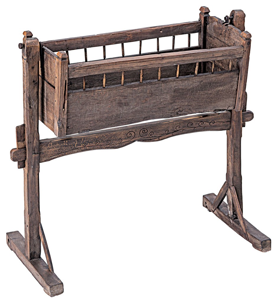 Erdély (?), 19. sz. vége, ácsolt, faragott bükkfa, vésett díszítéssel, alja hiányzik, 97*109*53 cm