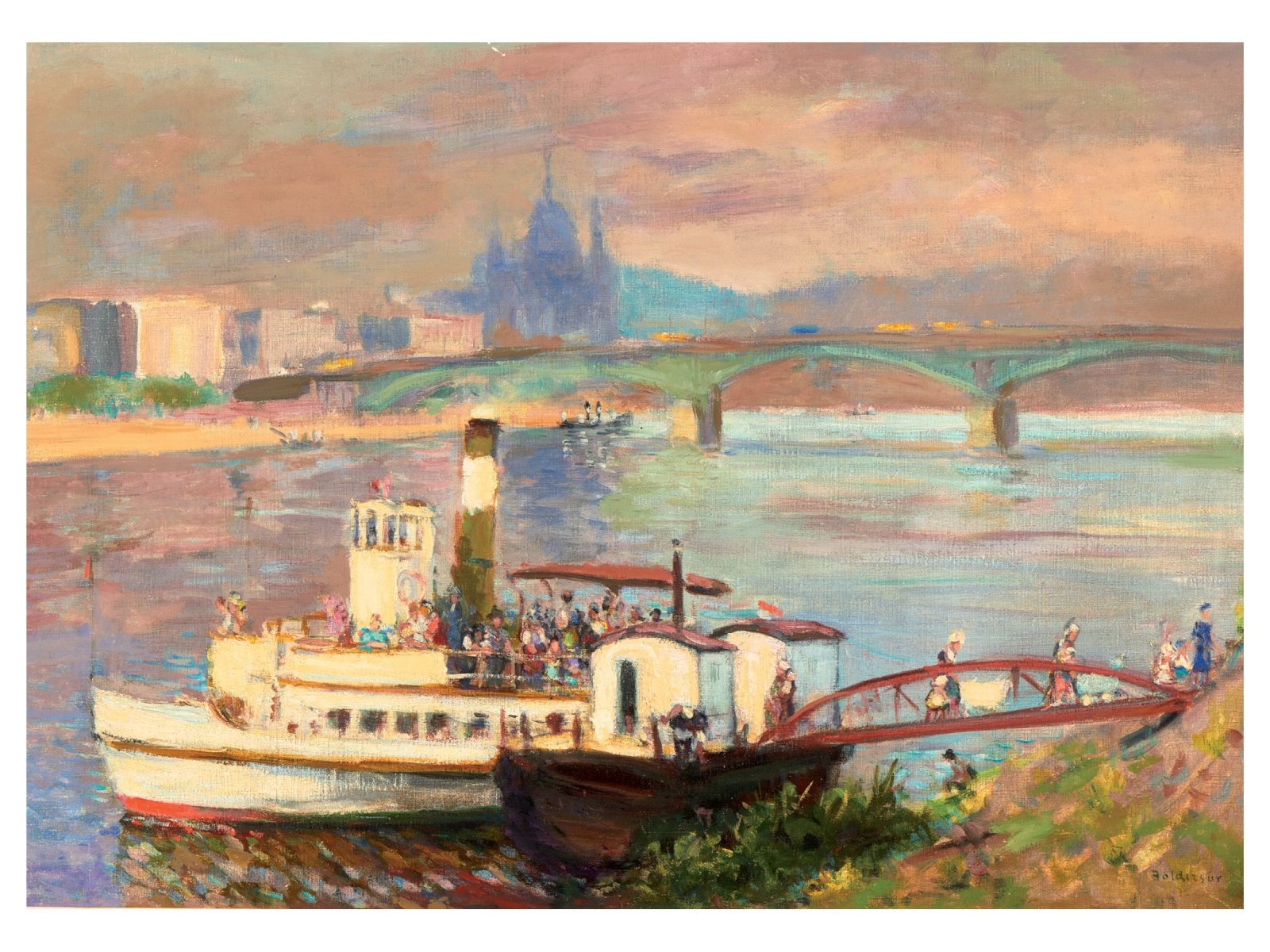 Boldizsár István (Orosháza, 1897 – Budapest, 1984) Hajókikötő Olaj, vászon 70,5 X 100 cm Jelezve jobbra lent: Boldizsár
