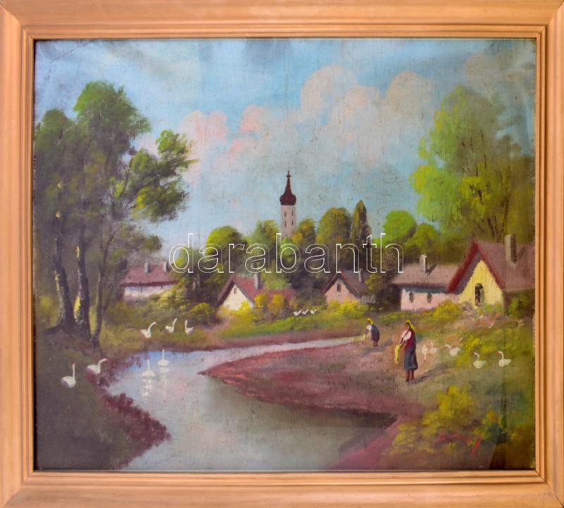 Budaváry (?) jelzéssel: Falusi életkép. Olaj, vászon. Aranyozott, üvegezett fa keretben, 98×68 cm (külső méret: 110×80 cm)<a href="https://www.darabanth.com/hu/gyorsarveres/423/kategoriak~Festmenyek-es-grafikak/Festmenyek-es-grafikak-jelzessel-jelze