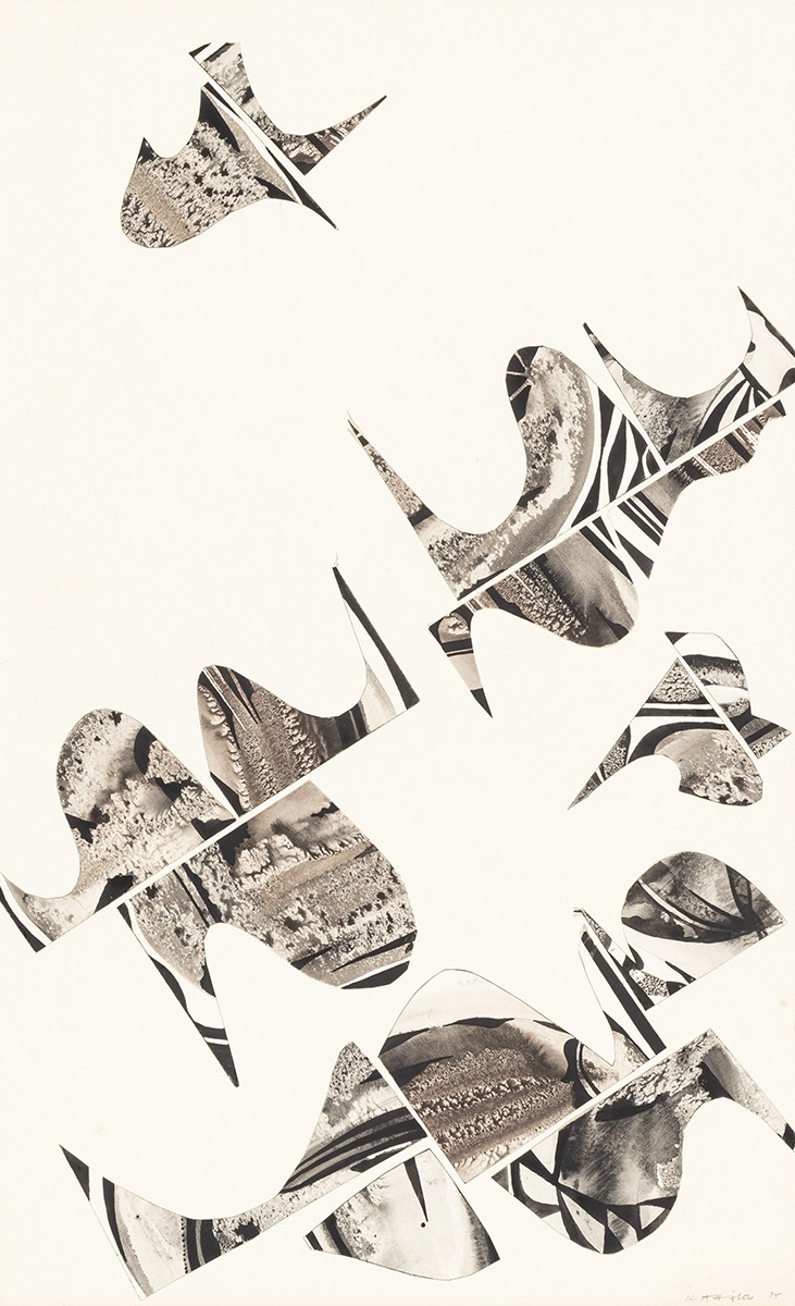 Csáji Attila (Szepsi, 1939) A mediterrán kategória számomra meglepetés V., 1975 Akvarell, kollázs, papír 500 × 305 mm Jelezve jobbra lent: Csáji A 75 Kiállítva: Csáji Attila retrospektív kiállítása. Budapest, Műcsarnok, 1988. december 9. – 1989. január