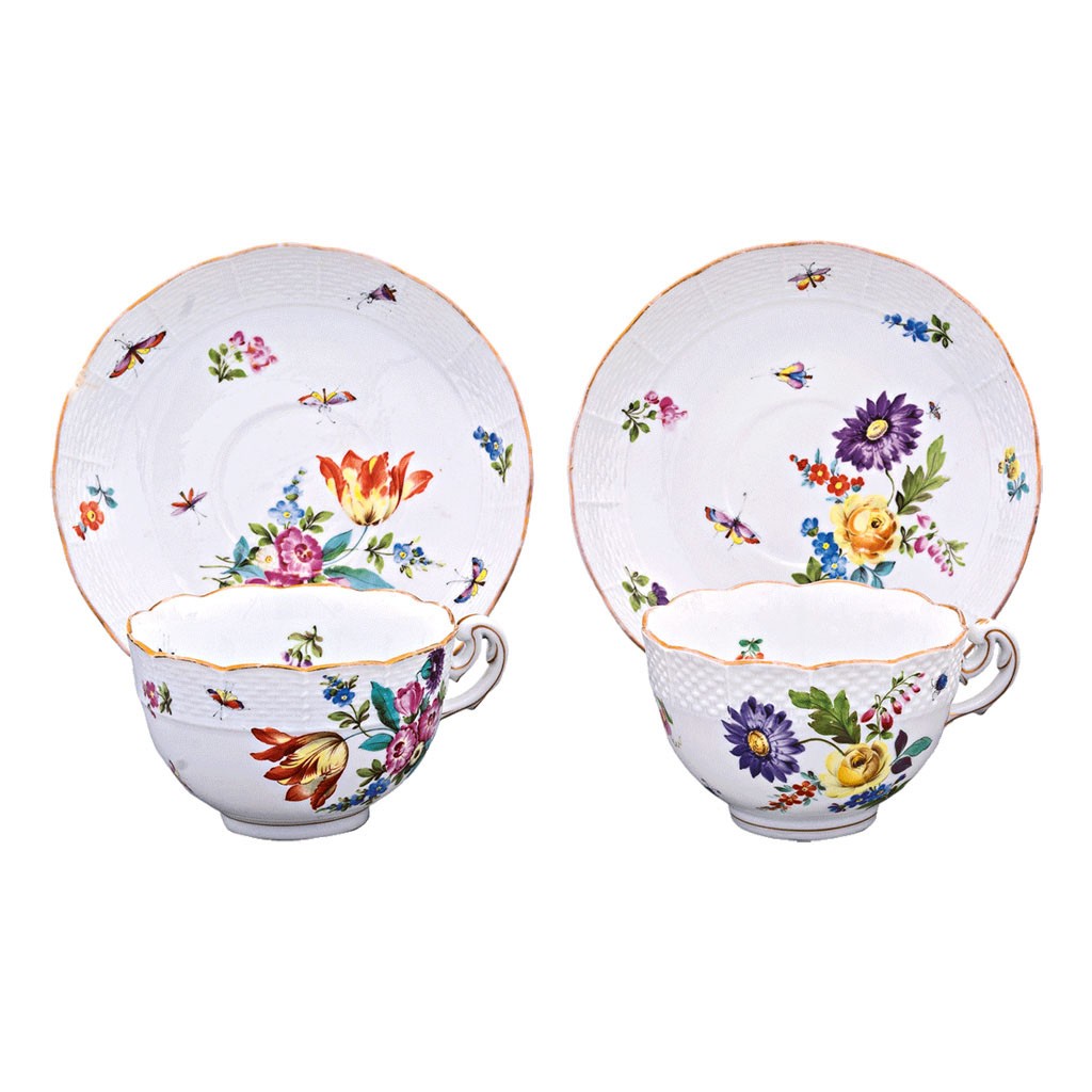 Herend, 19. sz. vége, festett porcelán, színes virágos mintával, talpakon zöld, szalagos-koronás jelzet, egyik tányér sérült, d: 15,5 cm; m: 6,5 cm