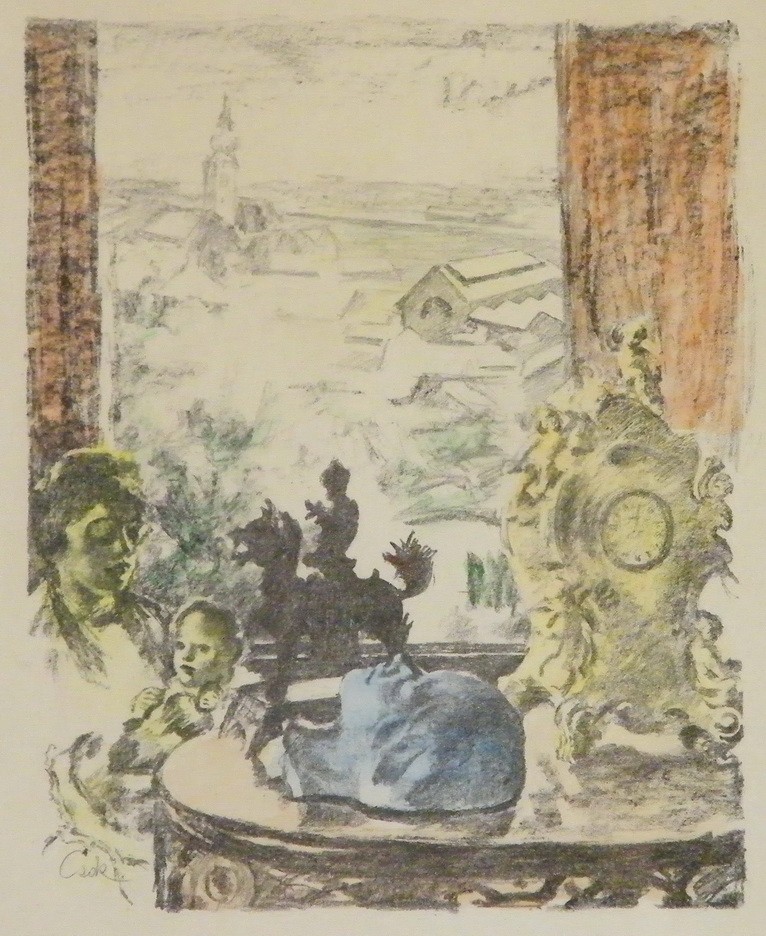 akvarellel színezett litográfia, jbl., keretben, 32 x 26 cm