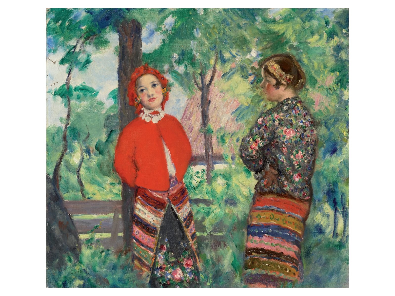 Csók István (Sáregres, 1865 – Budapest, 1961) Sokác lányok Olaj, vászon 75 X 80 cm Jelezve balra lent: Csók I.