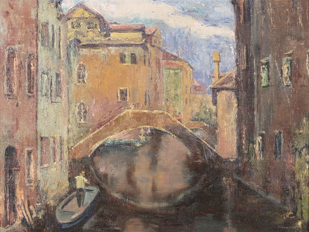 Kikiáltási ár: 60 000 FtKlie Zoltán (Szekszárd, 1897 – Budapest, 1992) Házak Olaj, farost 60 × 80 cm Jelezve jobbra lent: Klie Z.