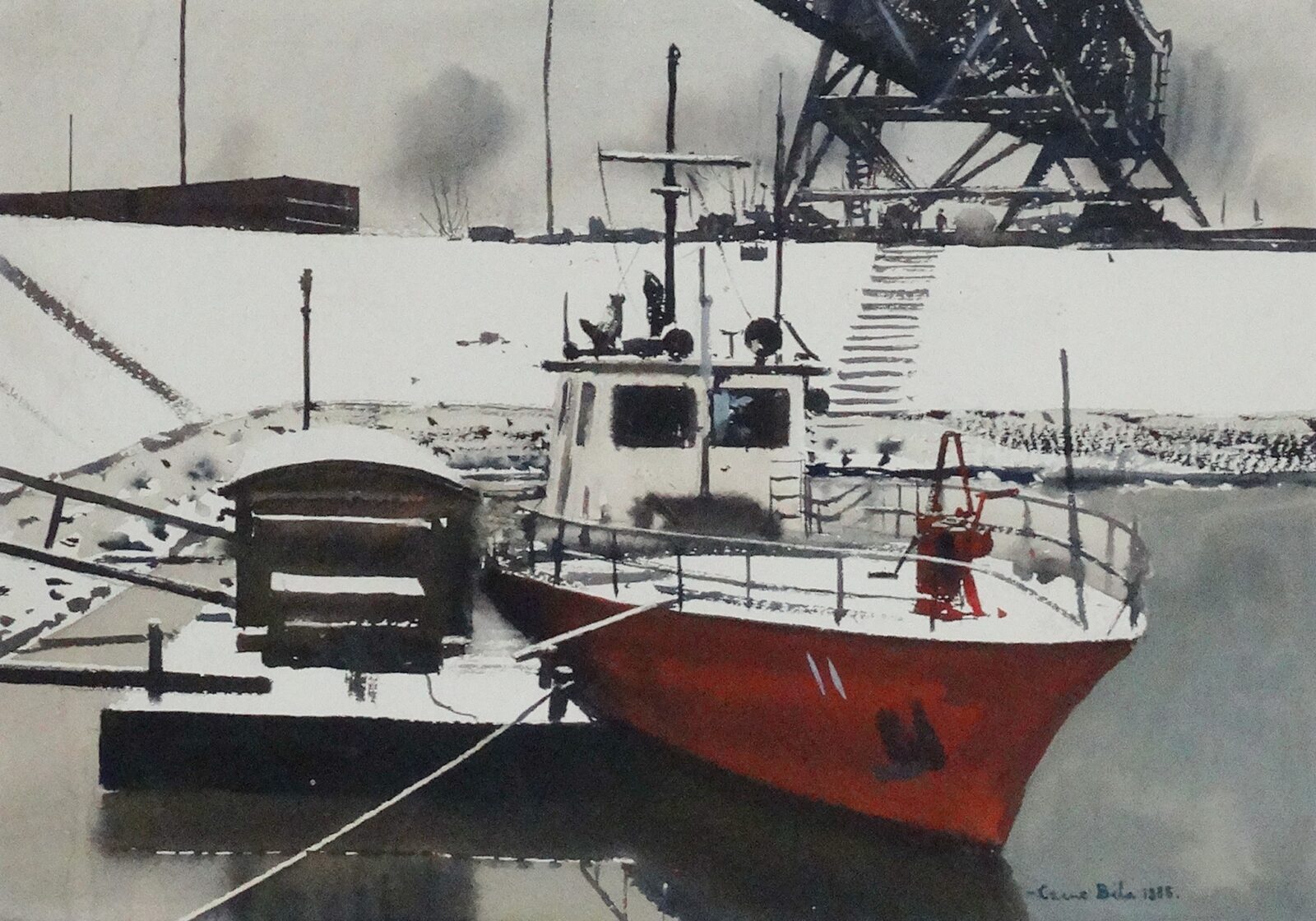 karton, akvarell, jjl, keretben, 33 x 46 cm