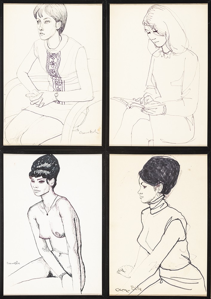 Czene Béla (Isaszeg, 1911 – Budapest, 1999) Női alakok 4 db kép Tus, filctoll, golyóstoll, kréta, papír 30 X 20,5 cm Jelzettek