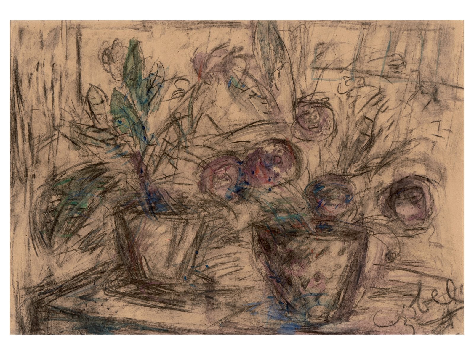 Czóbel Béla (Budapest, 1883 – Budapest, 1976) Csendélet virágokkal Akvarell, szén, papír 49,5 X 72,5 cm Jelezve jobbra lent: Czóbel