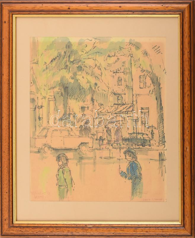 David Stanley jelzéssel: Bristoli forgatag. Vegyes technika, papír. Üvegezett fakeretben. 28,5×24,5 cm<a href="https://www.darabanth.com/hu/gyorsarveres/436/kategoriak~Festmenyek-es-grafikak/Festmenyek-es-grafikak-jelzessel-jelzes-nelkul~500002/Davi
