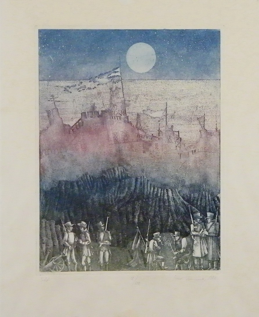 színes rézkarc, 18/100, jjl, 32 x 24,5 cm