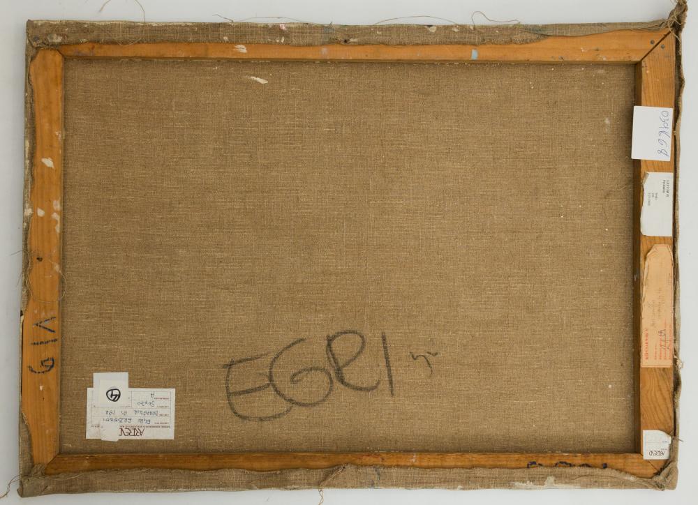 Olaj, vászon, jelezve balra lenn, hátoldalán Képcsarnok raglappal, kopásnyomokkal, 50×70 cm