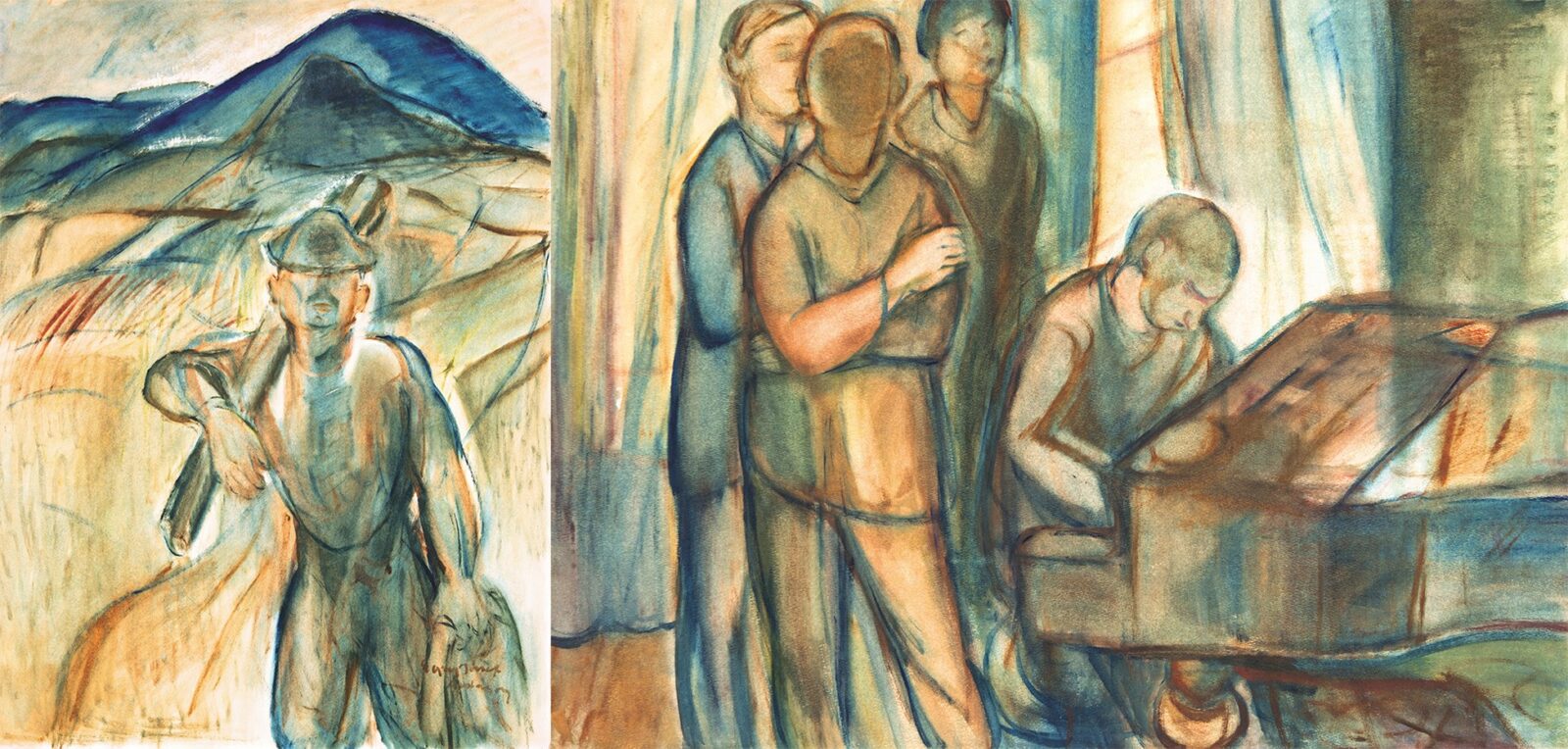 Egry József (1883-1951): Szőlőmunkás, 1927 Hátoldalon: Zongoránál ülő férfi