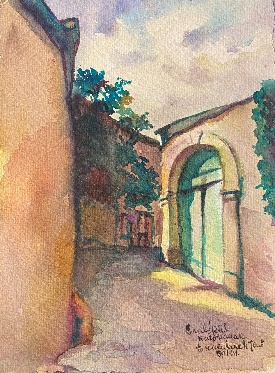 180×140 mm akvarell, papír, jelzés balra lent: Eschenbach Jenő Bp. 1931.