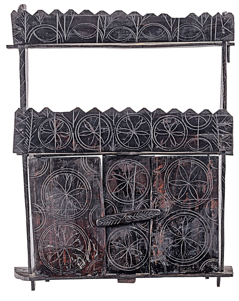 Máramaros, 19. sz. második fele, faragott fa, vésett díszítéssel, kis sérüléssel, 90*73*19 cm