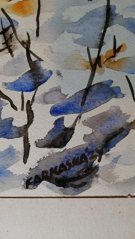 Kikiáltási ár: 3 000 FtMérete 13 cm* 17,5 cm, Technika: akvarell-tus/papír, J.J.L., 1997, keret nélkül