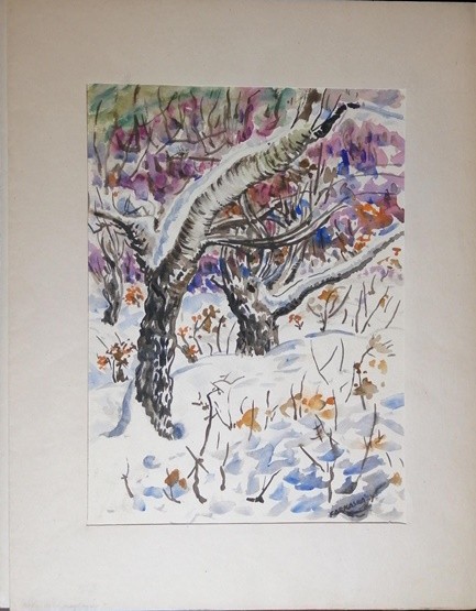 Kikiáltási ár: 3 000 FtMérete 54,5 cm* 37 cm, Technika: grafit/papír, a festőnő mappájából, bal felső sarka szakadt, hullámos